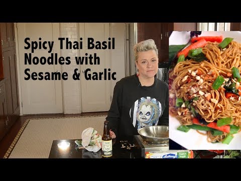 DDD Ep.#141 - Spicy Thai Basil Noodles with Sesame & Garlic - Thai Basil Noodles - The sauce for this takes 5 minutes & you can use spaghetti & any veggies you fancy. Easy & light. But Thai basil is sorta important - though regular basil would ...
