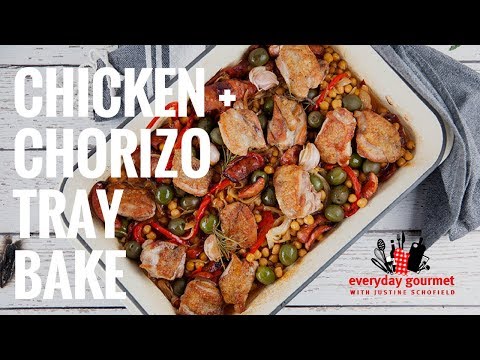 Chicken & Chorizo Tray Bake | Everyday Gourmet S7 E72 - Chicken Chorizo Potato Tray Bake - As seen on Everyday Gourmet.