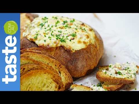 Cheese and bacon cob loaf - Cheese And Bacon Cob Loaf - For perfect party food, serve up this tasty cheese and bacon cob dip. For the full recipe click here: http://bit.ly/2gBA25j Brought to you by: http://www.taste.com.au/ ...
